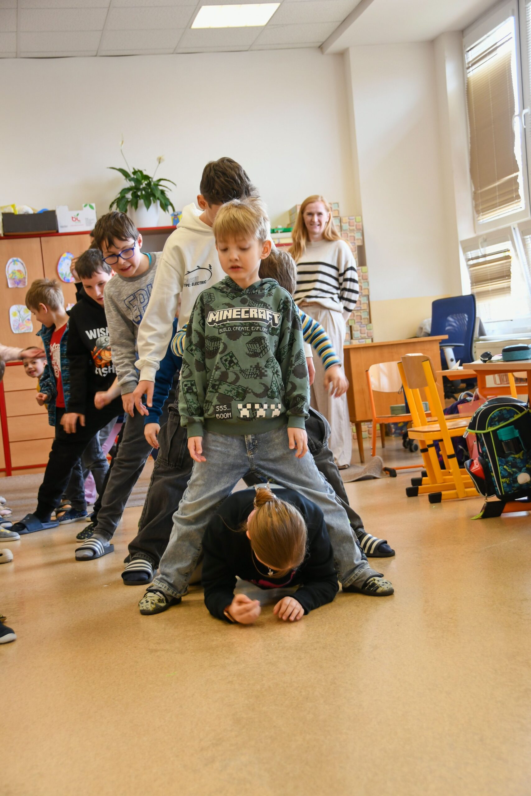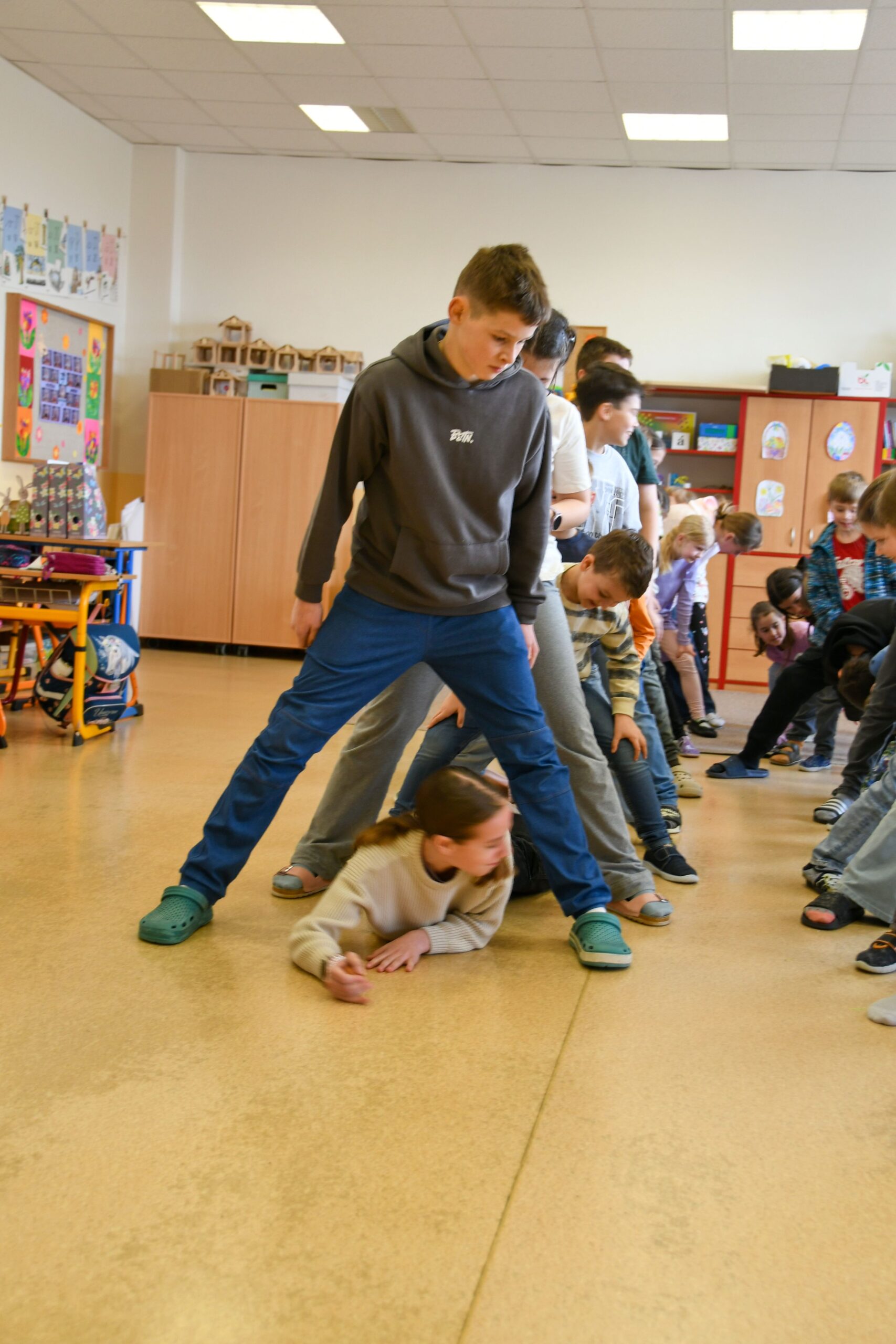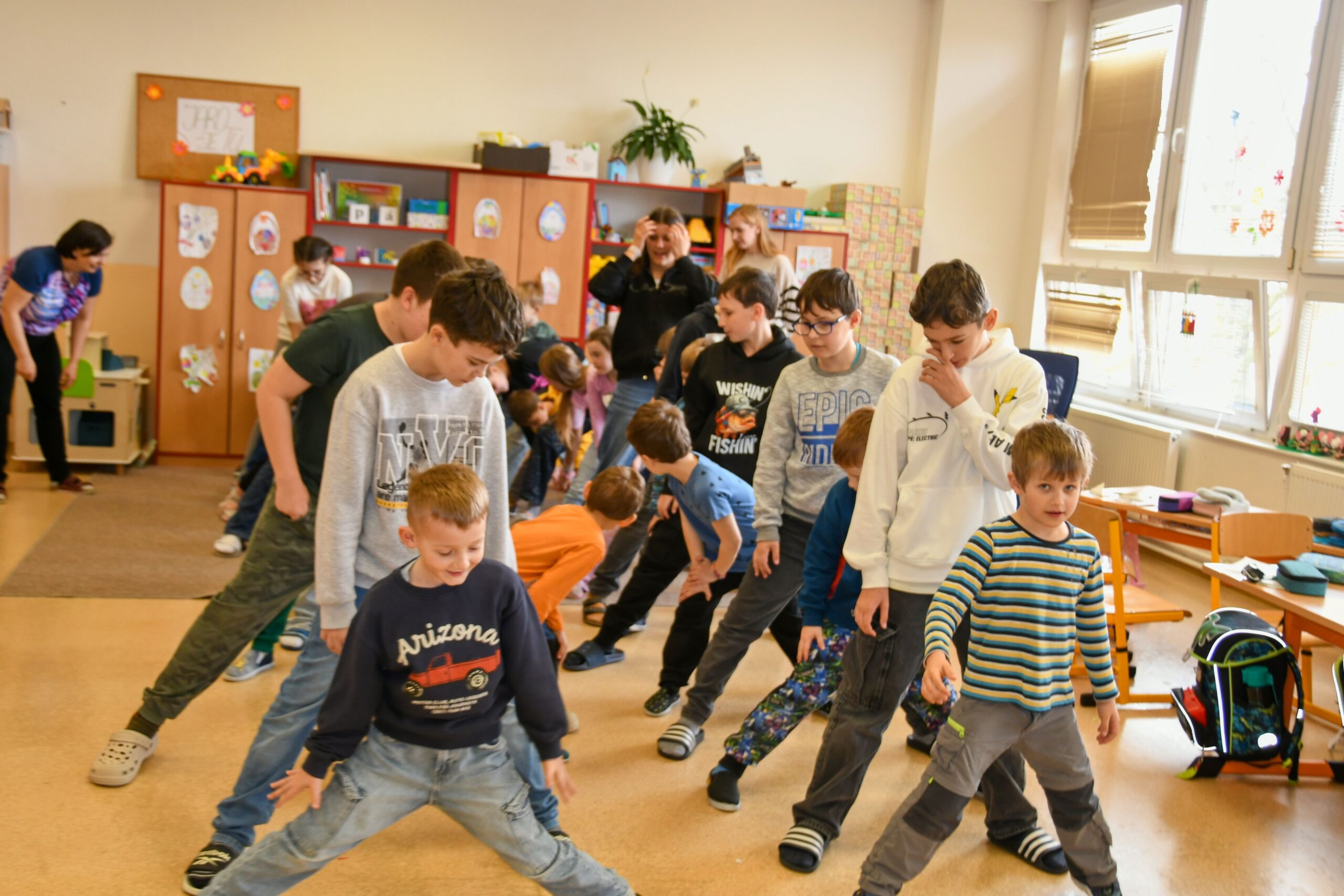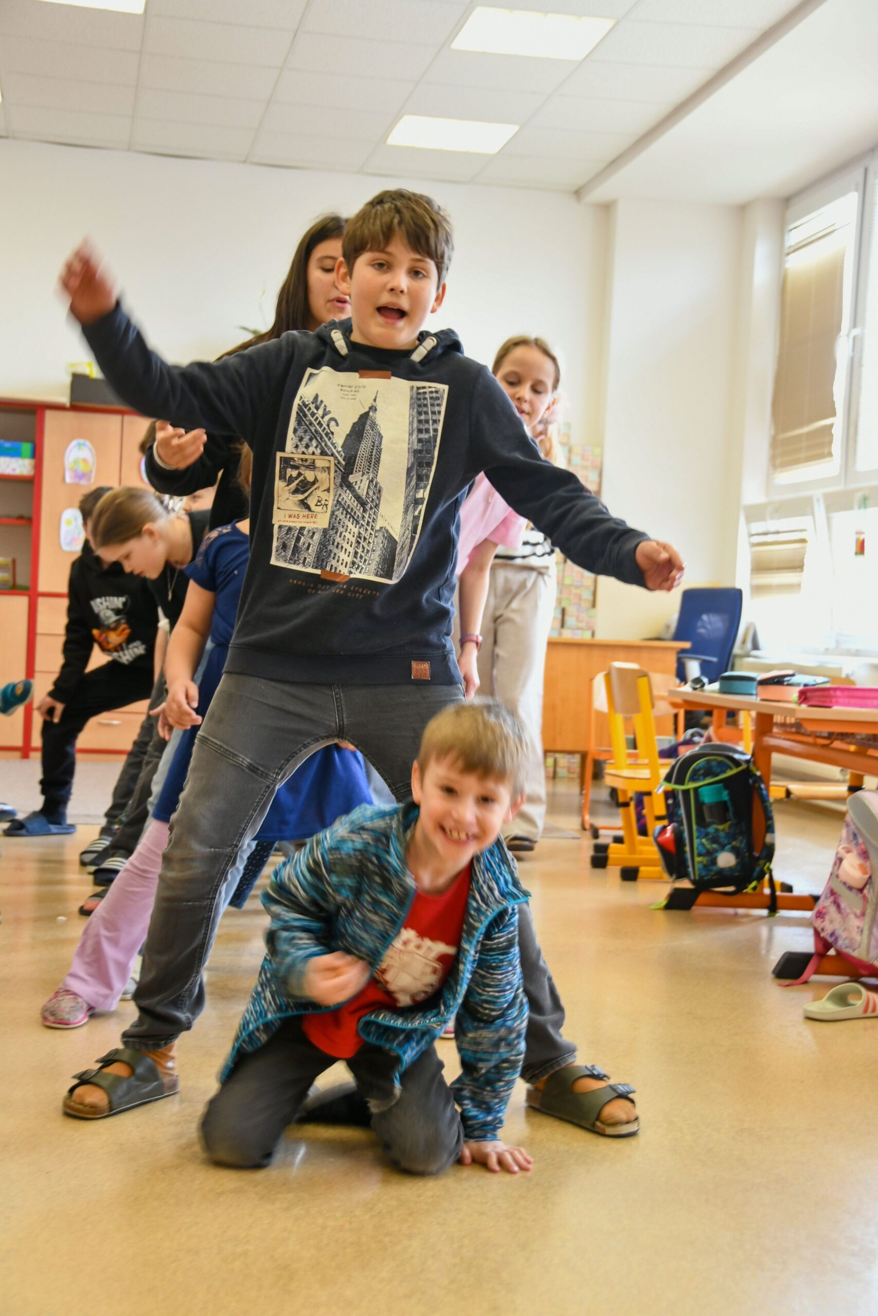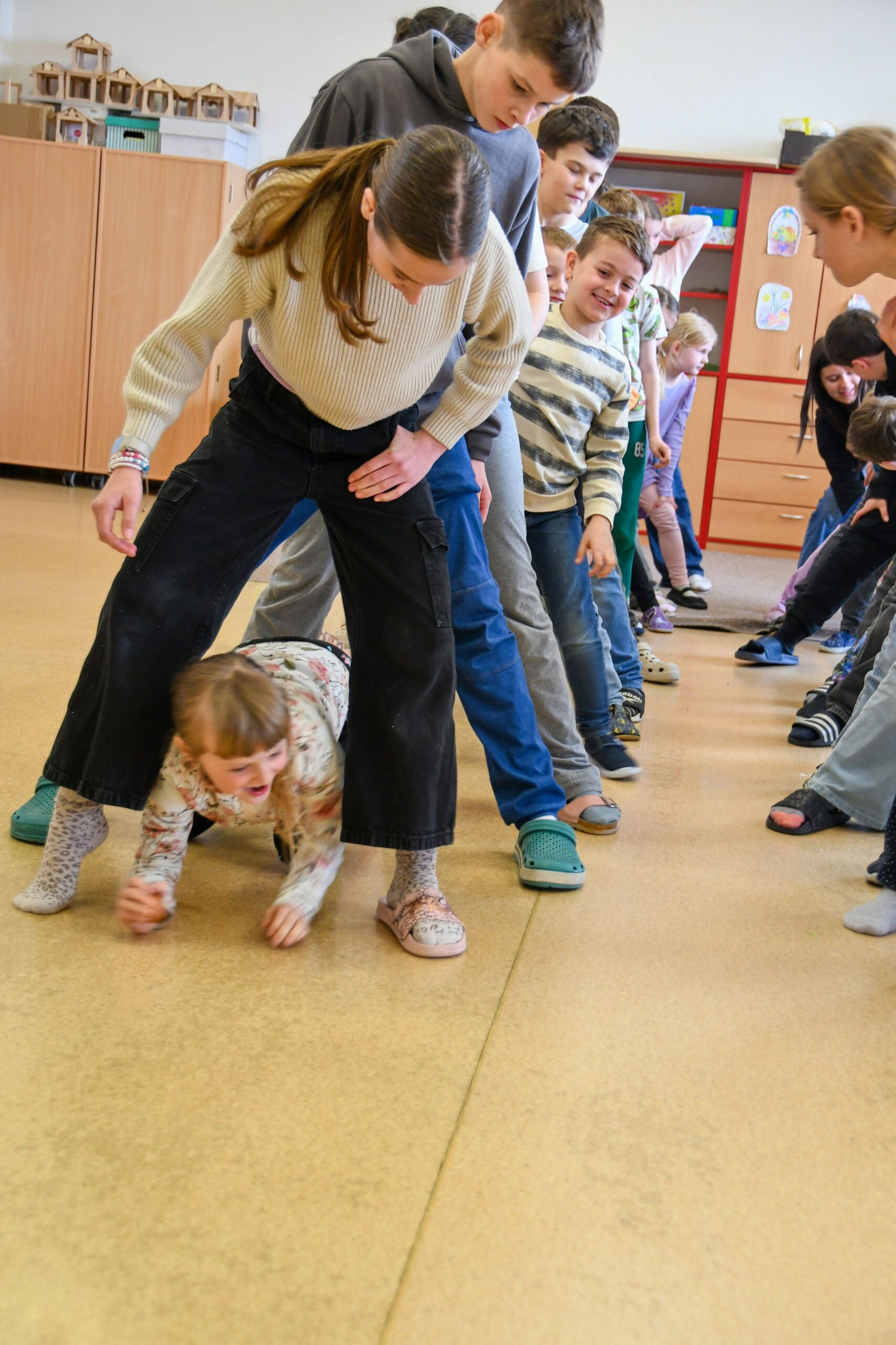 Velkým zážitkem bylo hledání velikonočních vajíček, do kterého se všichni s nadšením zapojili. Prvňáčci hledali a šesťáci počítali získané body. Nechyběly ani zábavné aktivity jako přenášení vajíček na lžičce, posílání vajíčka tunelem nebo skládání puzzlí, které šesťáci sami pro své mladší kamarády připravili.